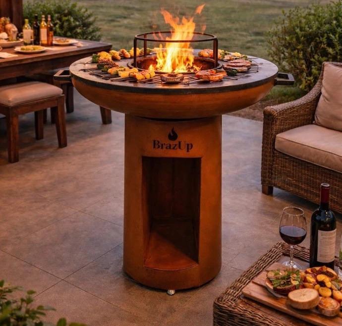 Le BrazUp est un instrument de cuisine d’extérieur. C’est comme un grand barbecue, mais pour la cuisson à la plancha. Il dispose d’un rangement pratique pour le bois dans sa base. Il est donc parfait pour cuisiner tout en profitant d’un feu chaleureux.